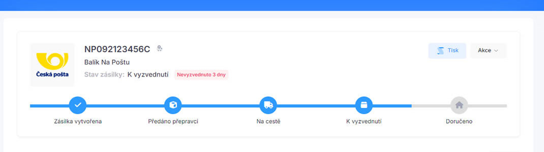 Nevyzvednuté zásilky je možné sledovat v Přehledu zásilek v sekci Zásilky.